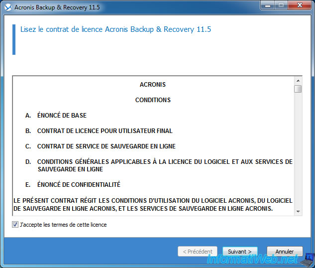 Download the trial version of Acronis Backup & Recovery and run the downloaded exe file. (The file name looks like this : ABRxx.xS_trial_fr-FR.exe)