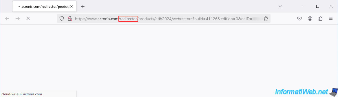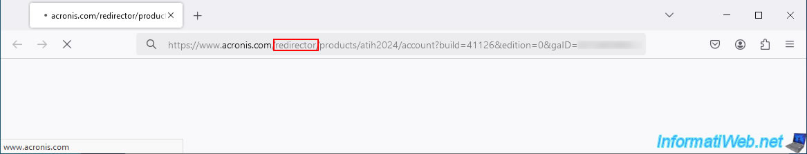 As you can see, your default web browser will be opened with a special address from Acronis (with the keyword "redirector").