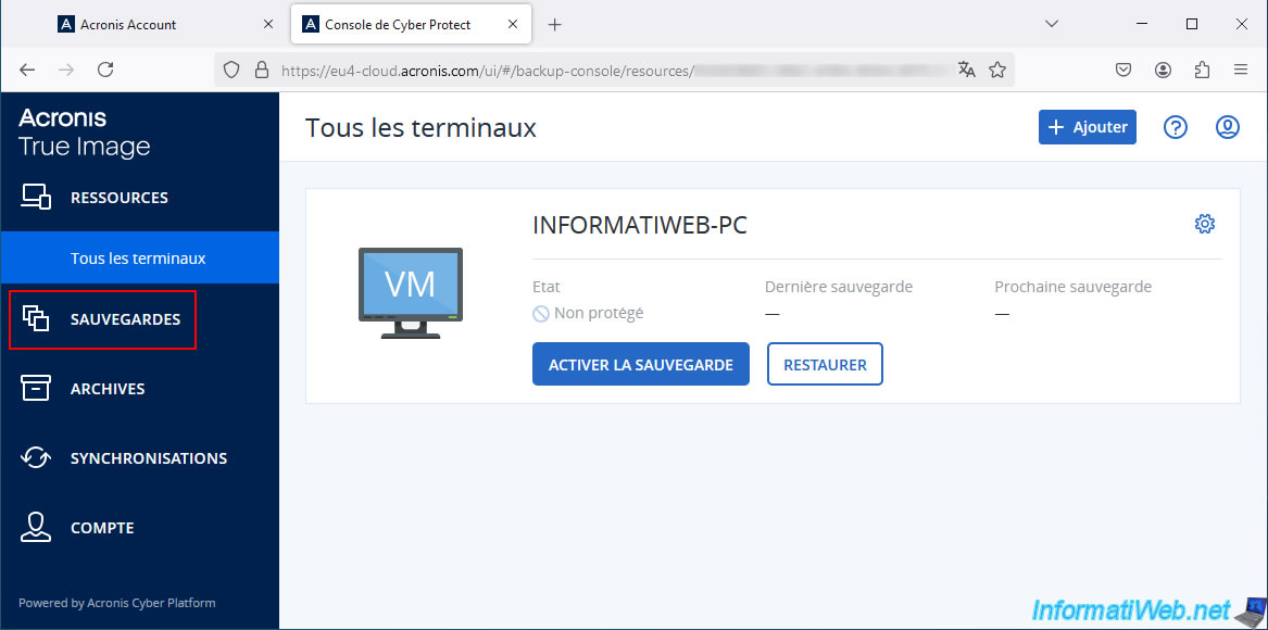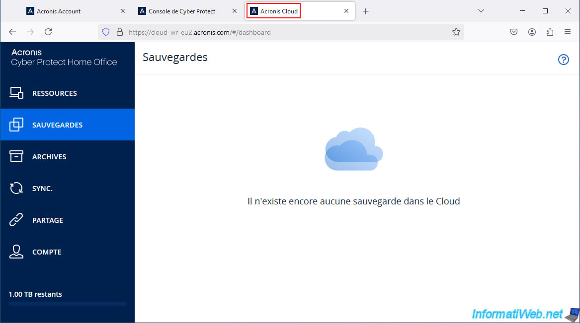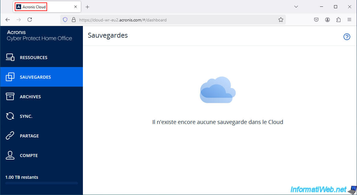 A few seconds later, you will arrive at the Acronis Cloud website without even having to log in with your Acronis account.