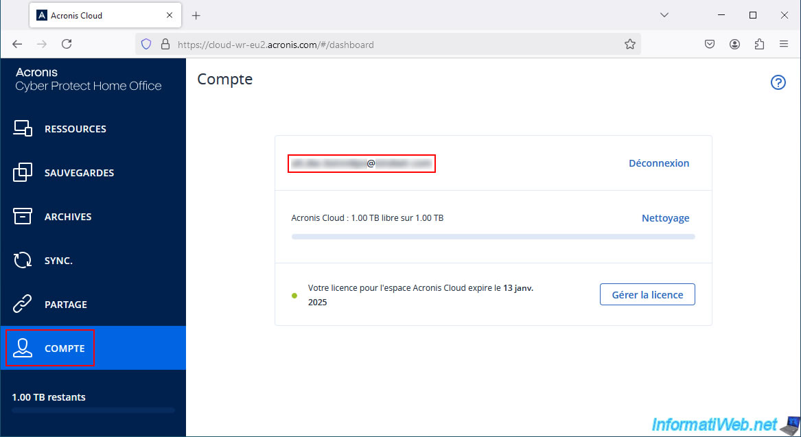 If you go to the "Account" section of this "Acronis Cloud" site, you will see that you are successfully logged in with your Acronis account.