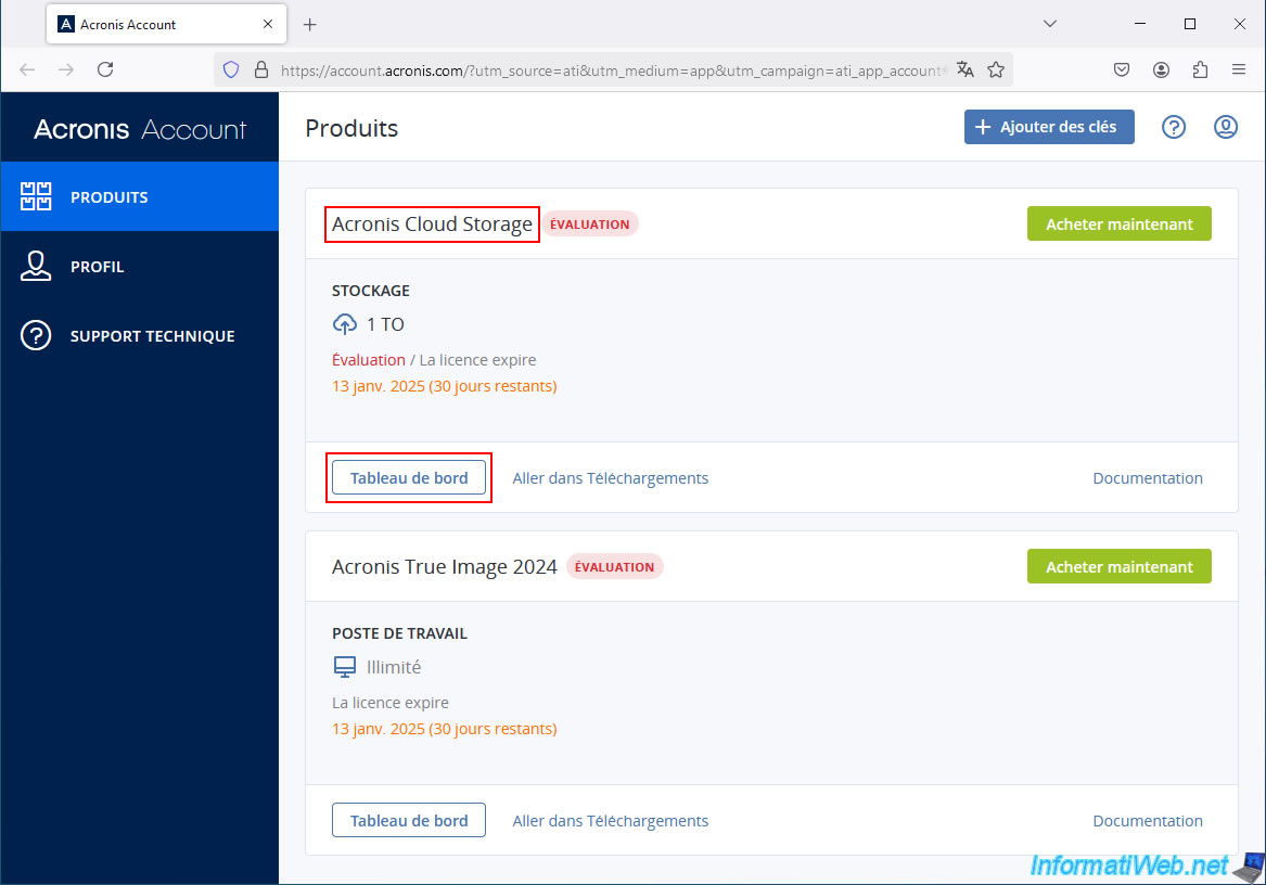 As you can see, you will arrive on the "Acronis Account" page of the Acronis website by being automatically logged in with your Acronis account.