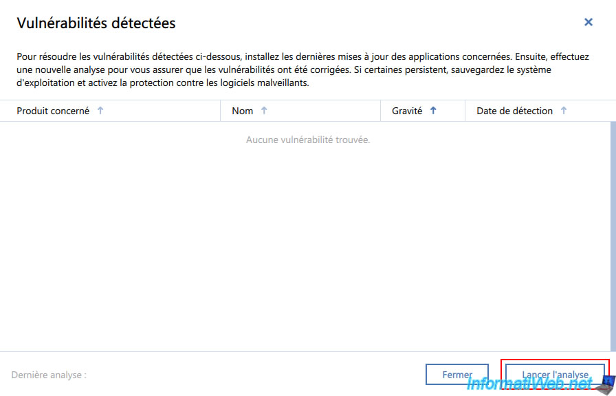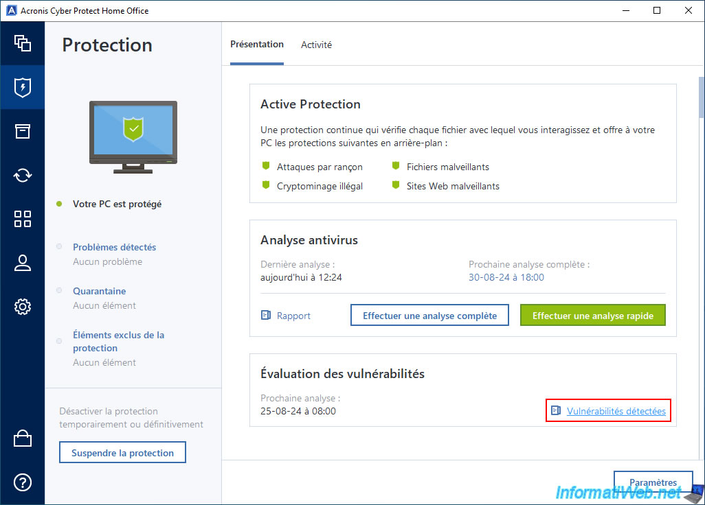 To find out about your computer's vulnerabilities, click on the "Vulnerabilities detected" link in the "Vulnerability assessment" section.