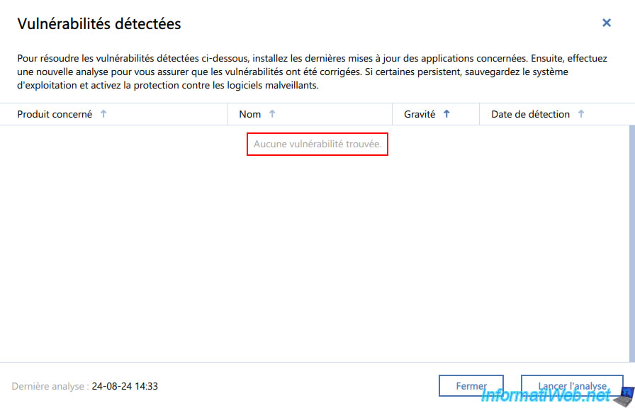 If Windows is indeed up to date and there are no known vulnerabilities in other programs installed on your computer, then the message "No vulnerabilities found" will appear.