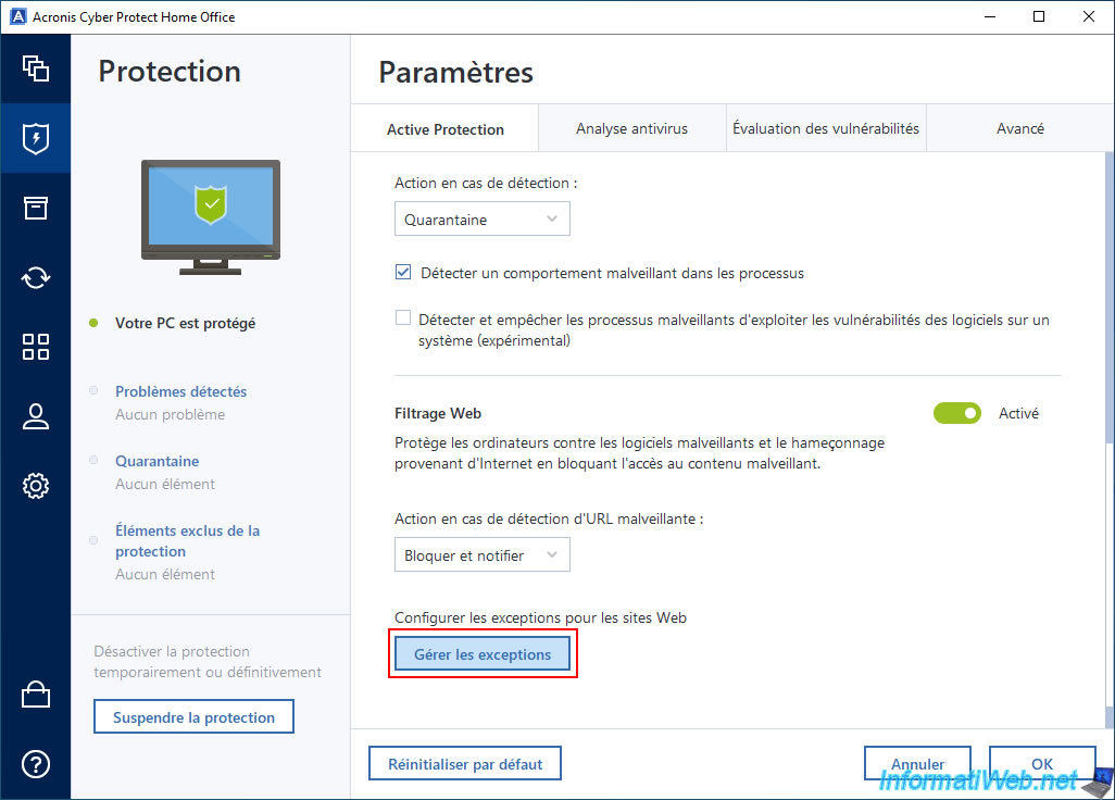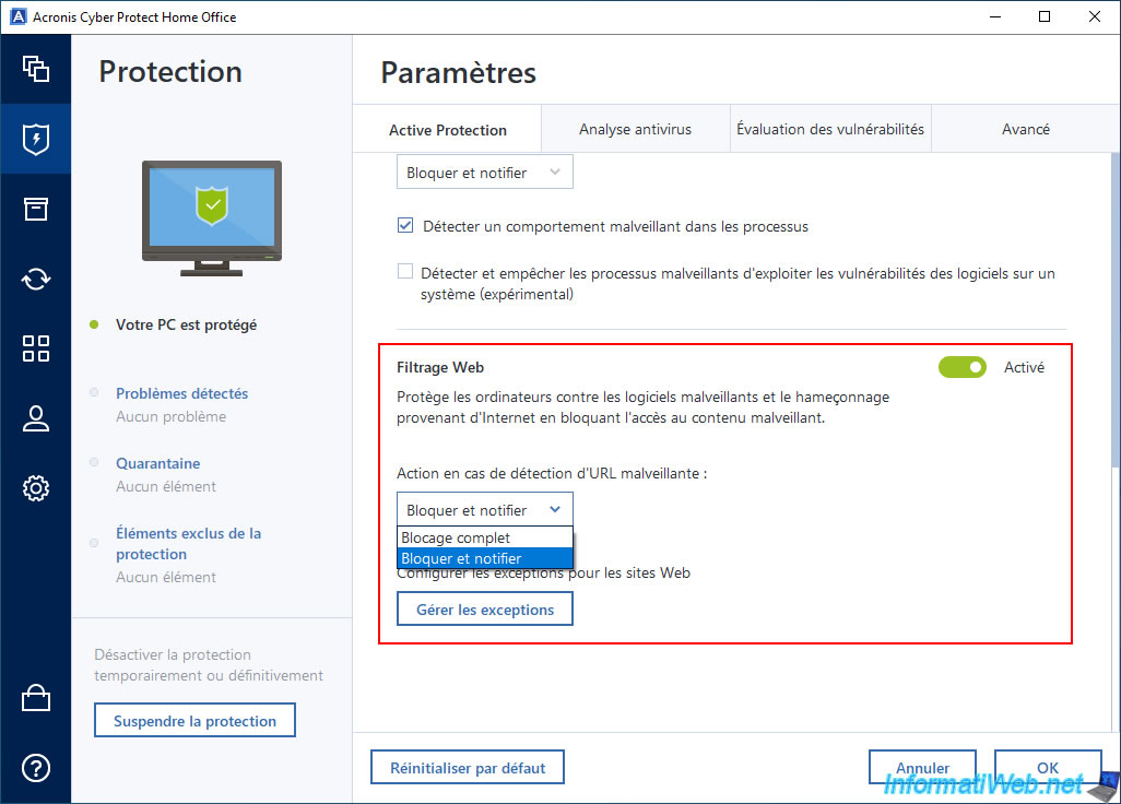At the very bottom of the "Active Protection" tab of this protection settings, you will find a "Web Filtering" section which is enabled by default and already protects you against malware and fake sites (phishing).