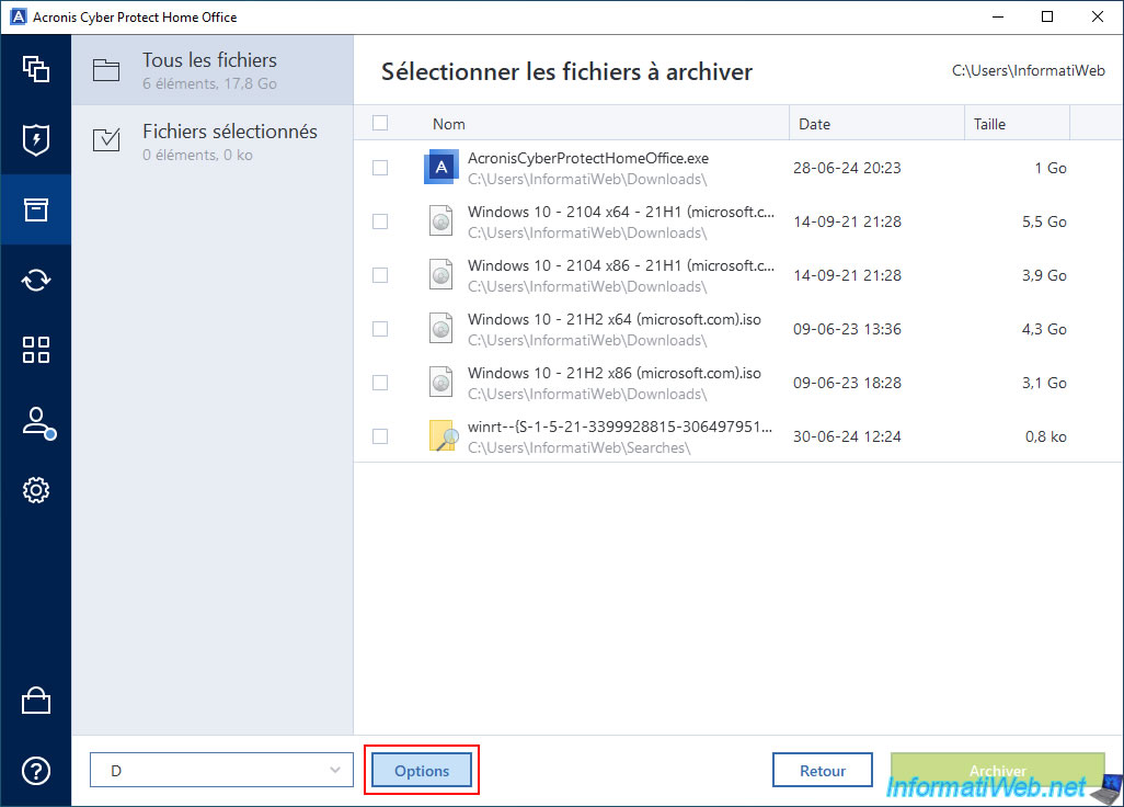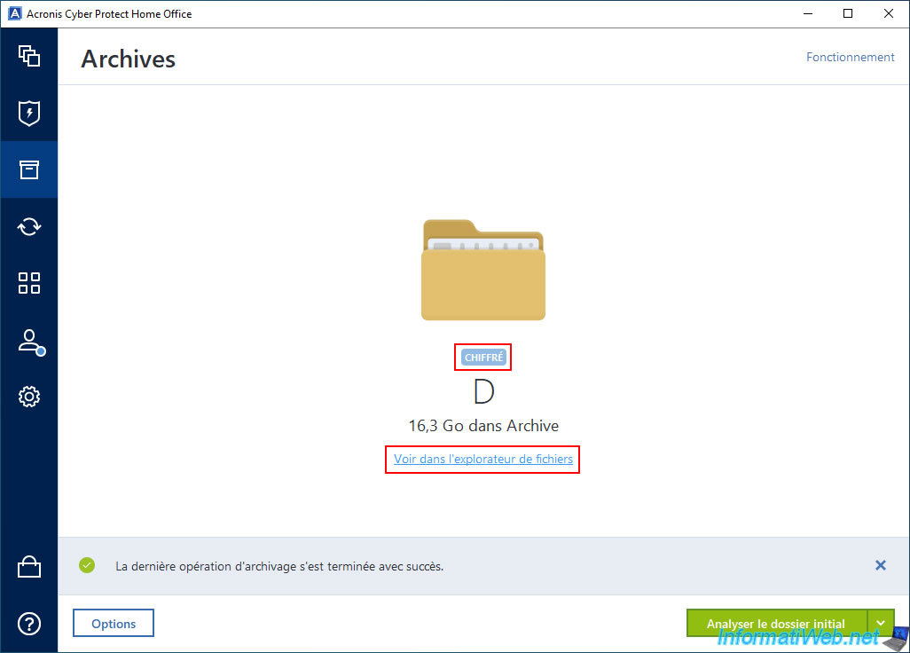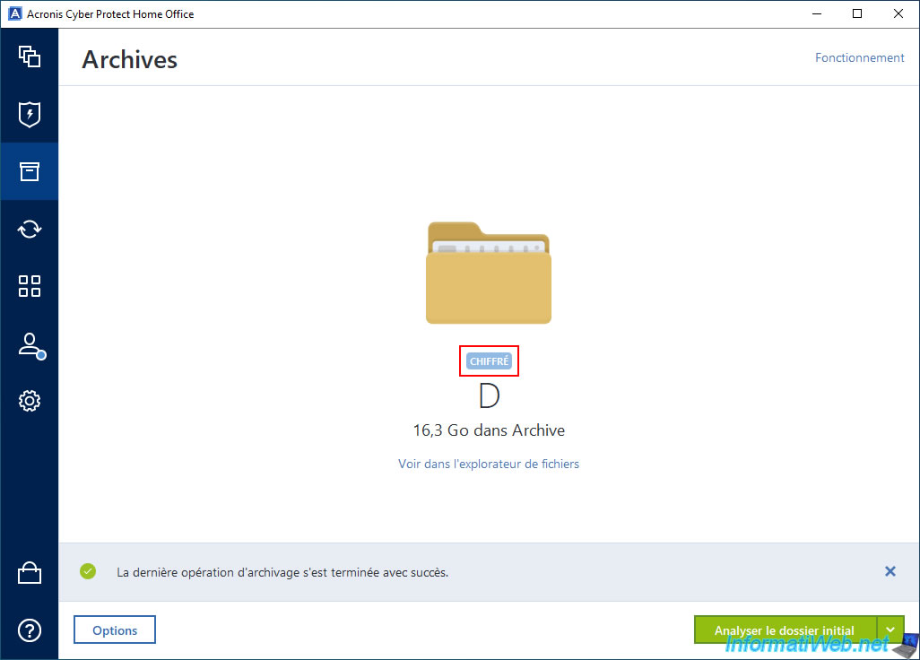 To create an encrypted archive of your old and/or large files, go to the "Archive" section of Acronis Cyber Protect Home Office (True Image).