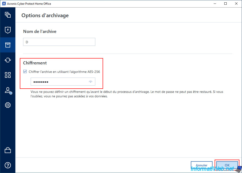 But, you can also encrypt this Acronis archive with the AES 256 encryption algorithm if you want.