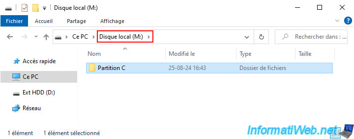As you can see, the "Local Disk (M:)" appears in the file explorer.