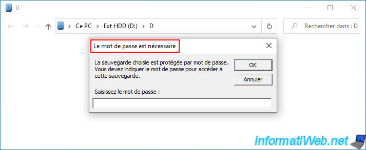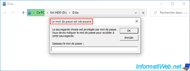 As expected, a small "Password is required" popup will appear with the message "The chosen backup is password protected".