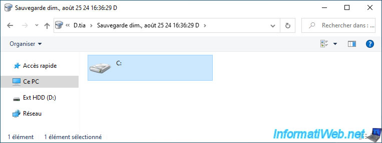 As expected, in this backup (archive) you will find the source partition concerned by the previously archived files.