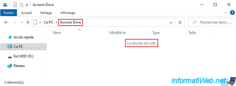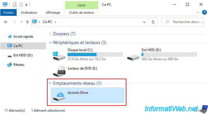 In the "This PC" section of Windows File Explorer, you will see that a network location "Acronis Drive" has appeared.