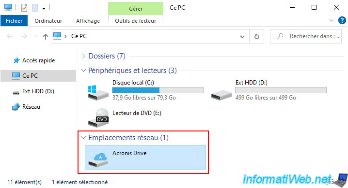 Another possibility to access the contents of your encrypted Acronis archive stored on Acronis Cloud is to open the network location "Acronis Drive" visible in the "This PC" section of Windows file explorer.