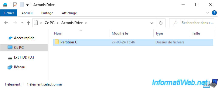 In this network location "Acronis Drive", you will see a folder corresponding to the source partition where the files were stored before archiving.