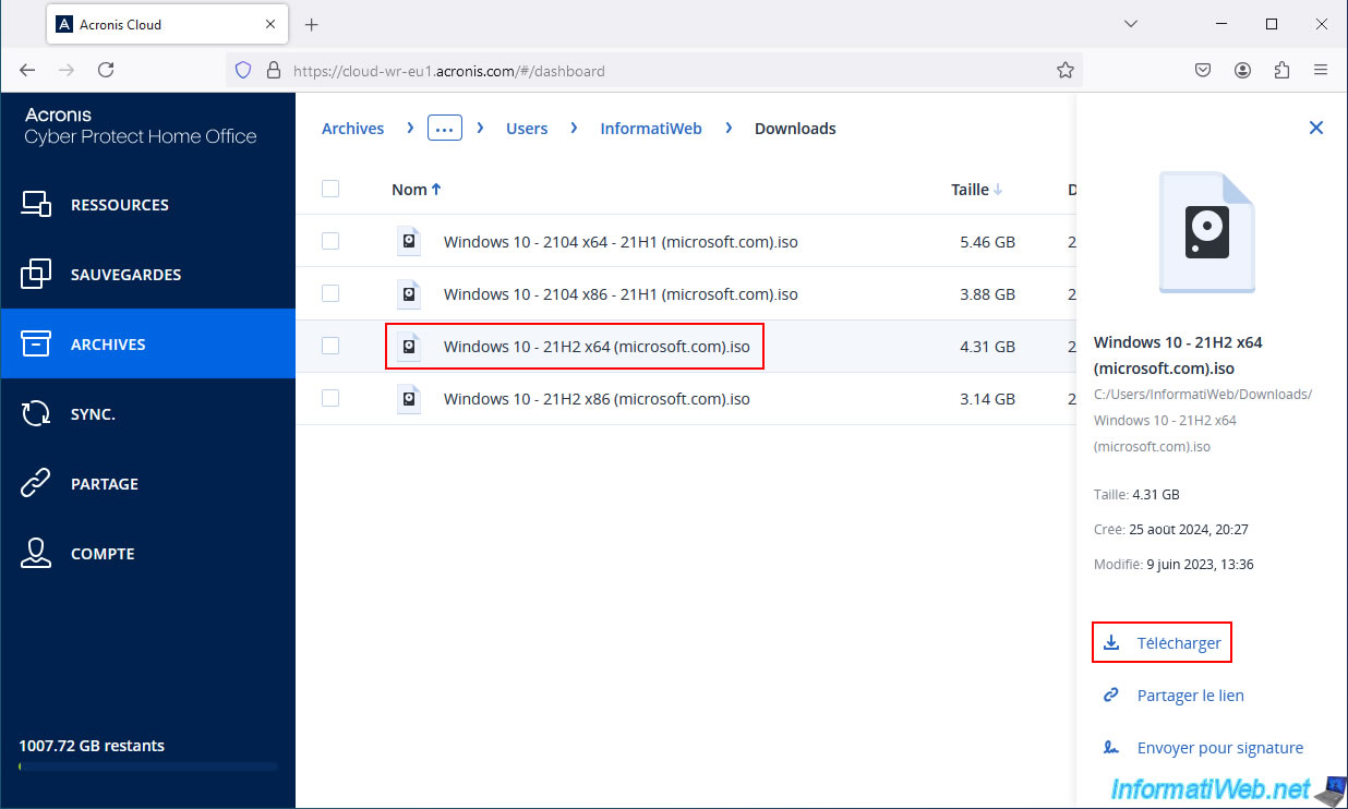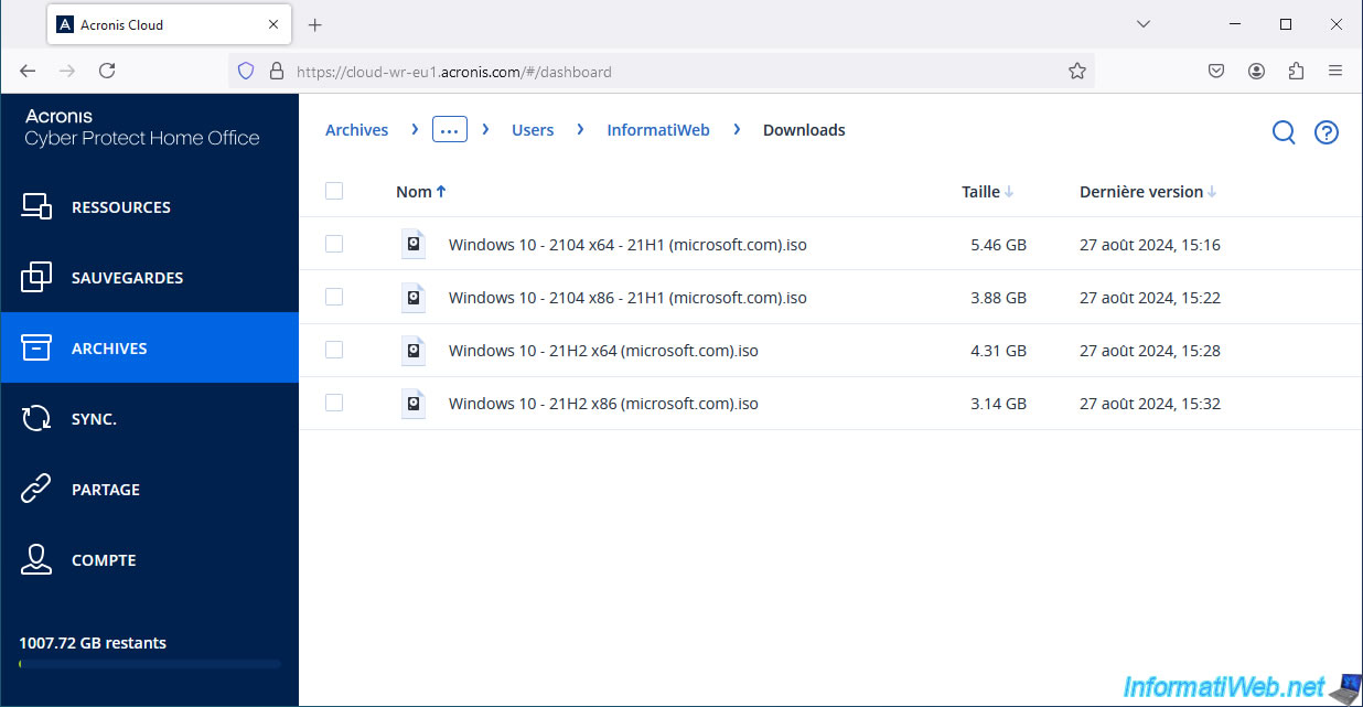 In our case, we can recover our archived files via Acronis Cyber Protect Home Office (True Image).