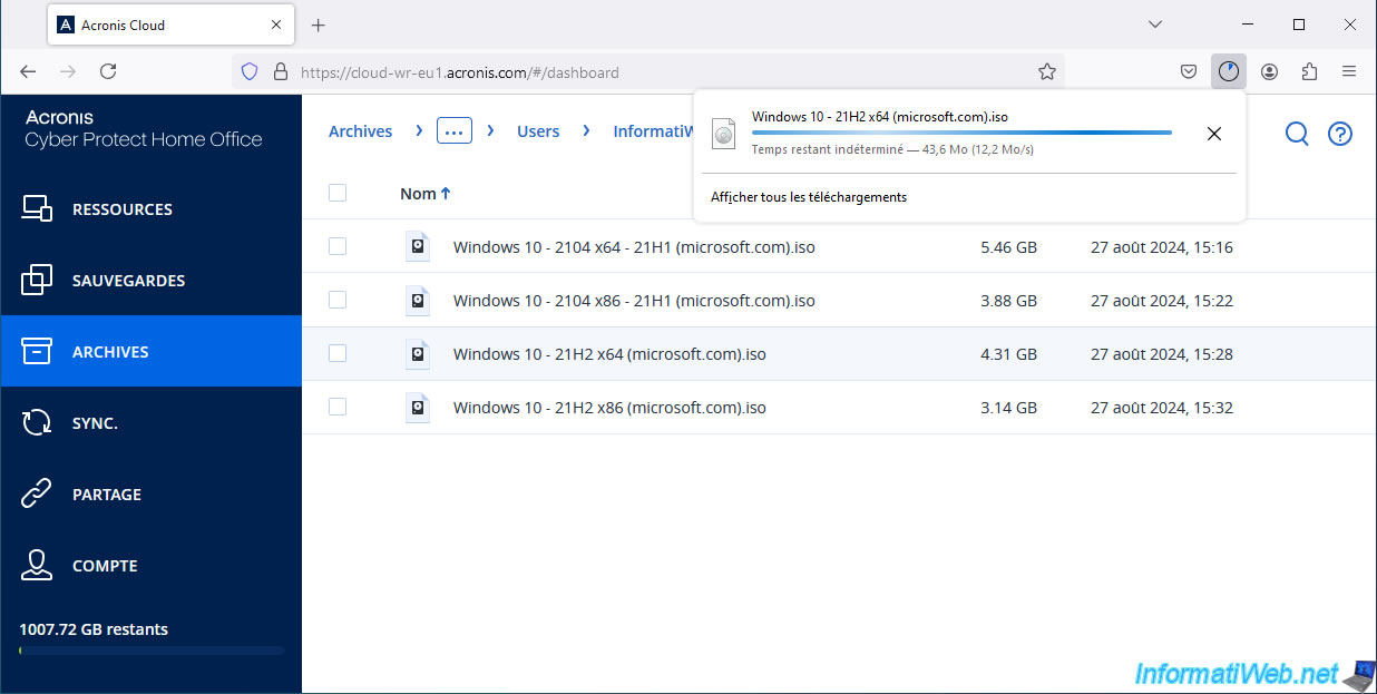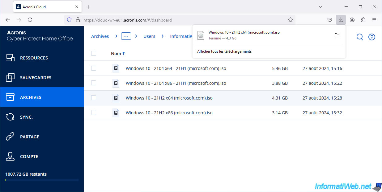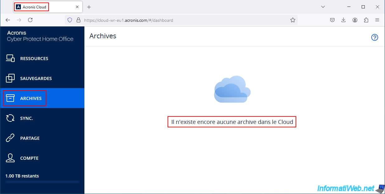 Note: again, you will notice that the password used for encrypting your archive on Acronis Cloud is not asked for (if you are still in the same Windows session as before).