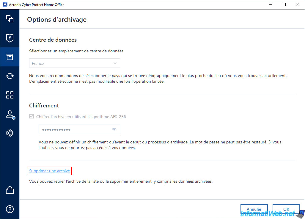 Your encrypted Cloud archive will also disappear from the "Archives" section of Acronis Cloud.