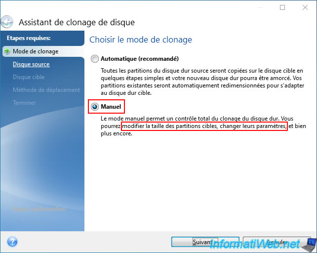 In the "Disk Clone Wizard" window that appears, select "Manual".