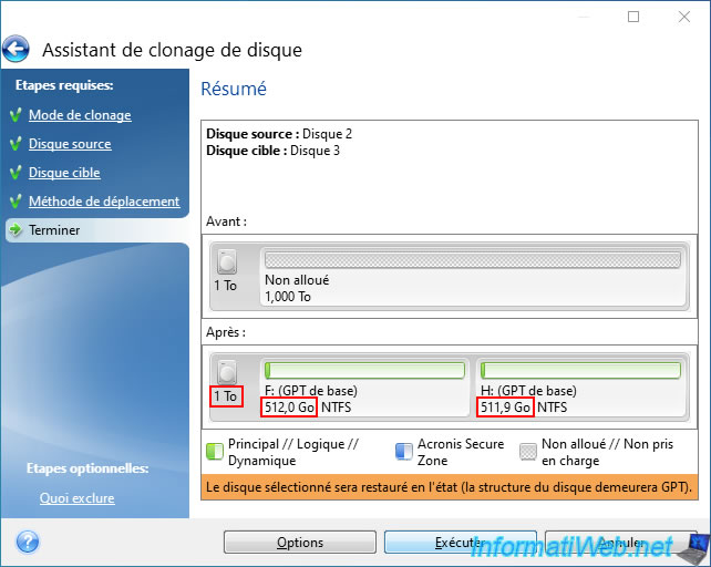 Note: if the 2 hard drives have the same capacity, the size of the partitions will obviously remain identical.