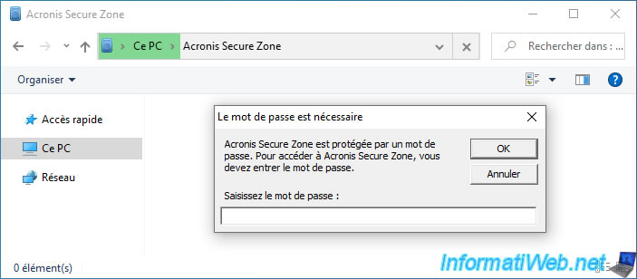 If your "Acronis Secure Zone" is password protected, a "Password is required" popup will appear.
