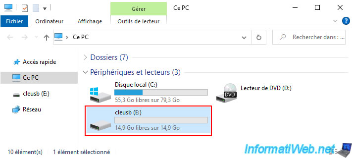 In file explorer you will see that your USB key has been renamed to "ACRONIS" and this bootable media only takes up 1GB of disk space on your USB key.