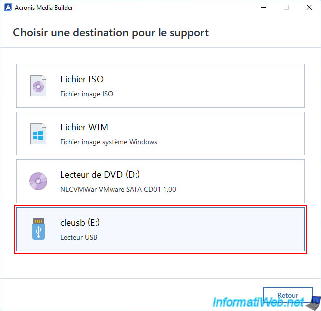 In the "Choose a destination for the media" step, click on "USB key".