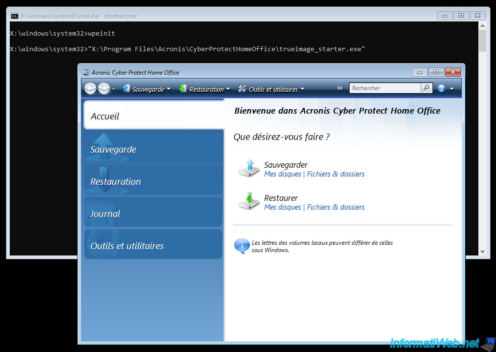 Warning : if you are using a trial version of Acronis Cyber Protect Home Office (True Image), be aware that the backup option of this Acronis rescue media will be disabled.