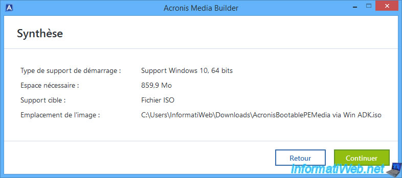 As you can see, Acronis Media Builder will create Windows 10, 64-bit media (which matches the version of Windows ADK installed) even though your computer is running Windows 8.1.