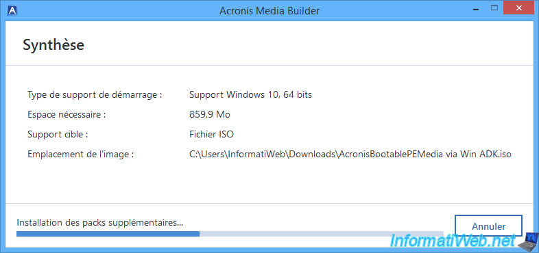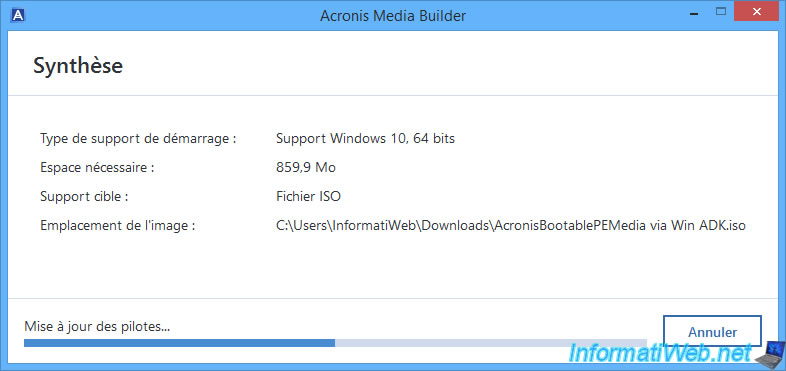 Finally, Acronis Media Builder will create the ISO file containing this updated WIM file with Acronis tools.