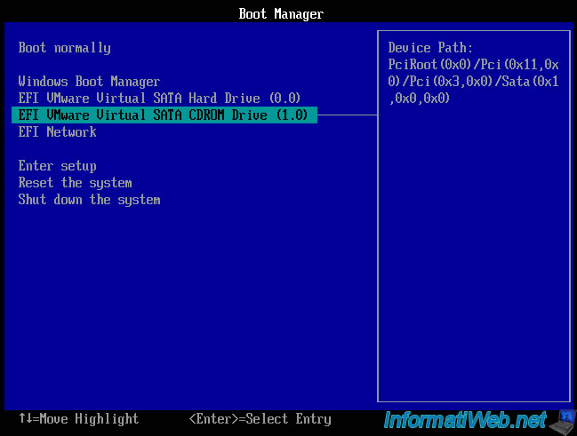 If the message "Press any key to boot from CD or DVD" appears, press Enter.