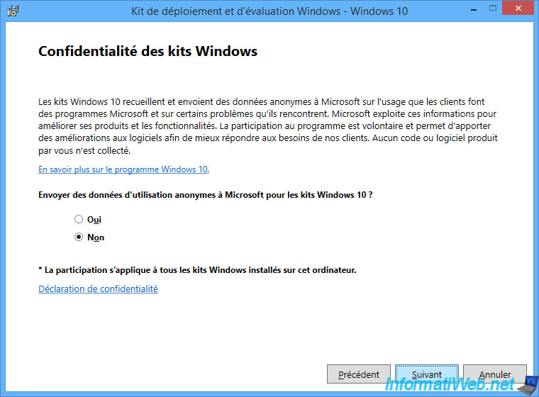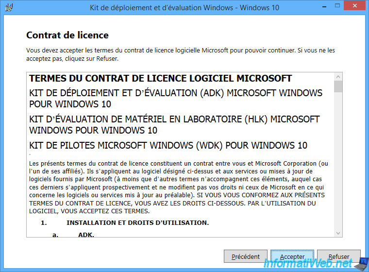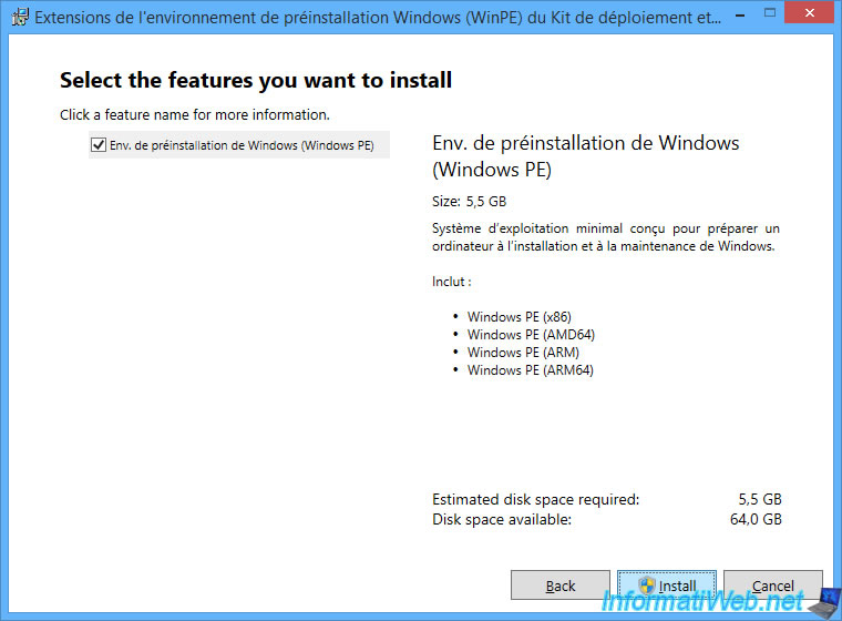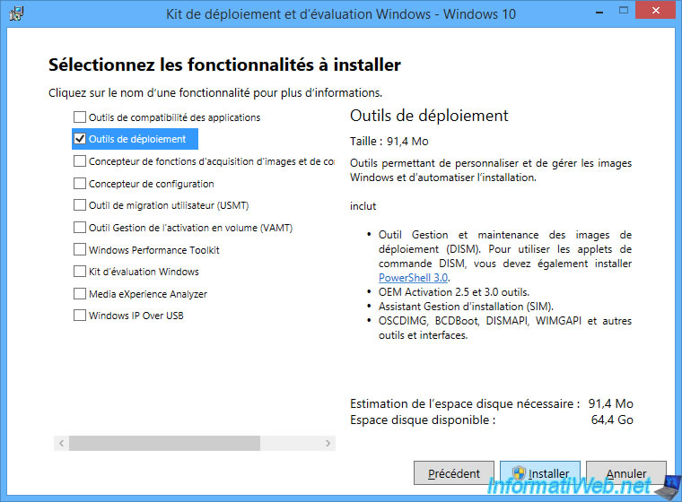 As you can see, the latest version of Windows ADK will be installed and therefore concerns Windows 10 and not Windows 8.1.