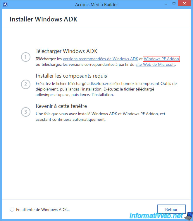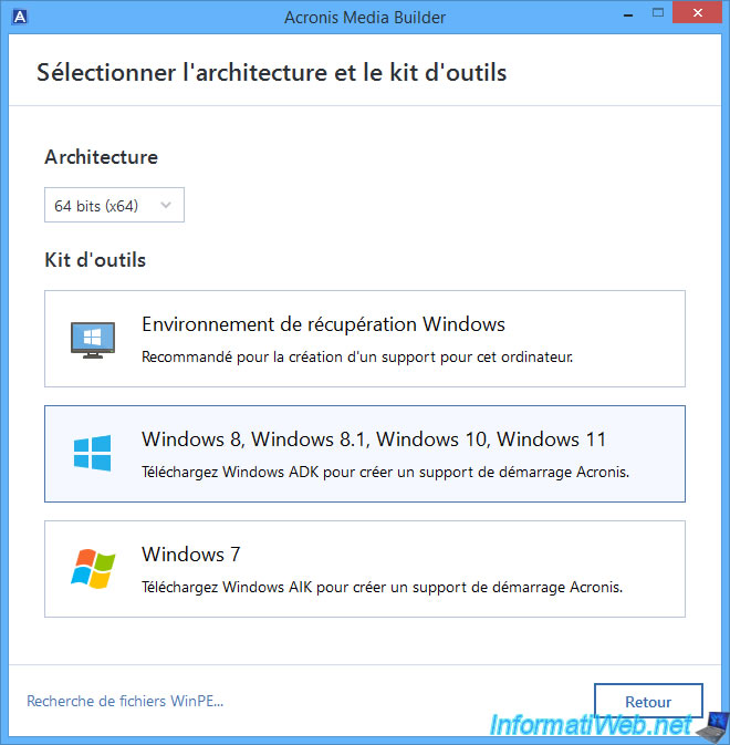 However, under Windows 8.1, you will first need to download and install 2 Microsoft tools to be able to create this rescue media by adding your desired drivers.