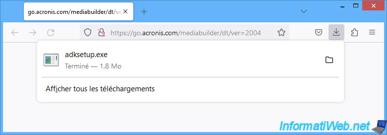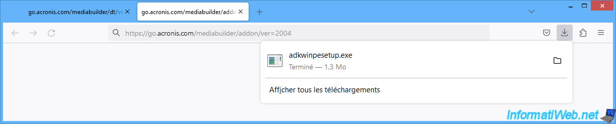 This time the (very light) file downloaded (again from a Microsoft server via an Acronis redirect) will be "adkwinpesetup.exe".