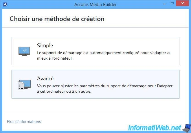 In the "Acronis Media Builder" window that appears, click "Advanced".