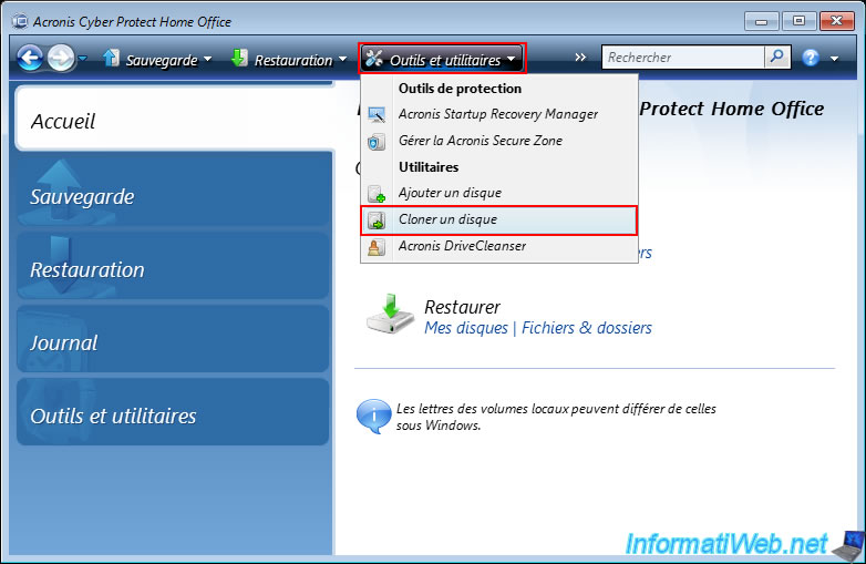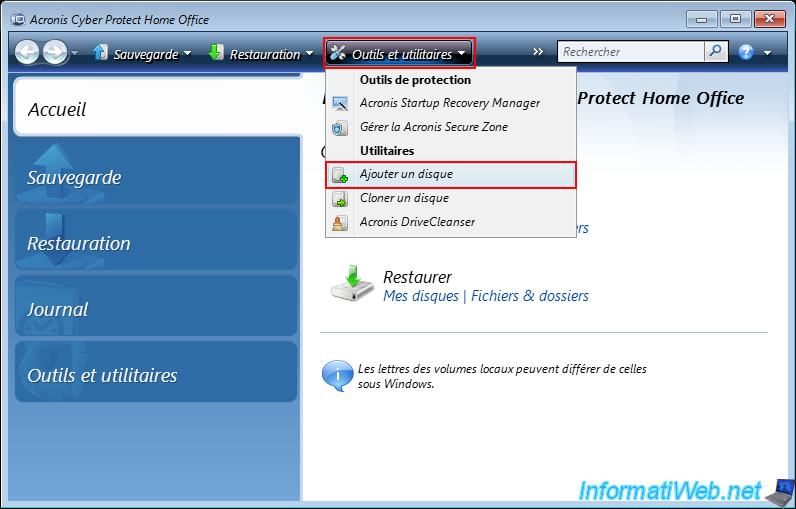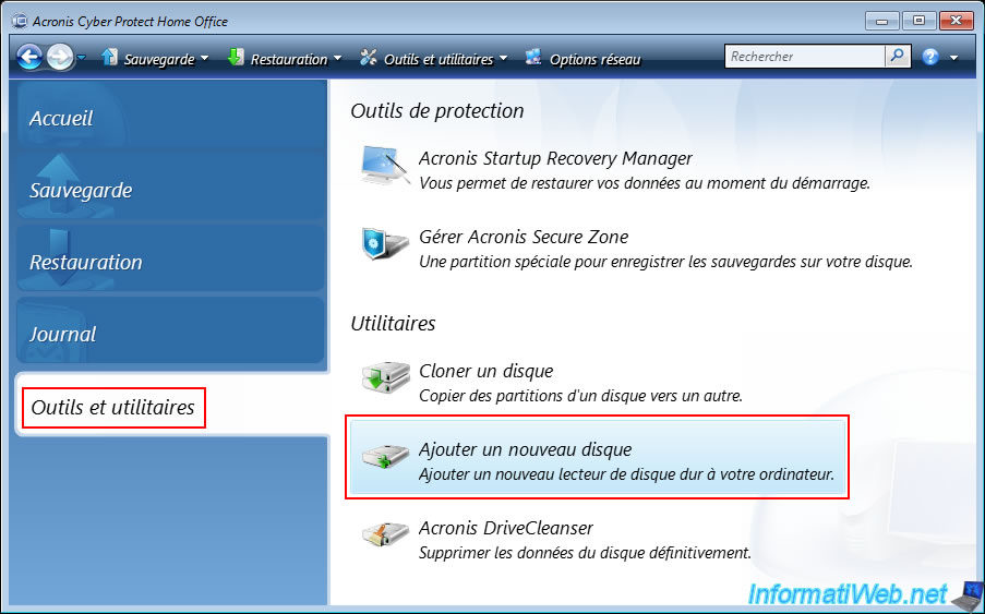 To do this, click on "Tools and Utilities" in the Acronis Cyber Protect Home Office (True Image) toolbar, then click on "Add a disk".