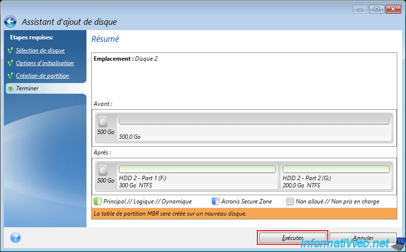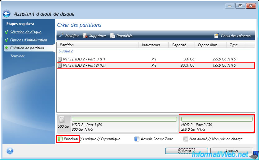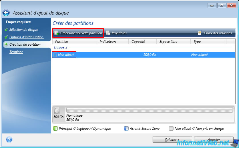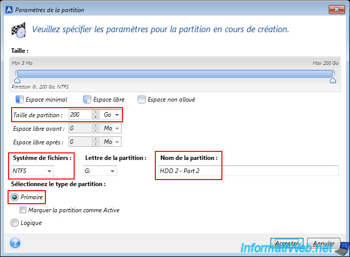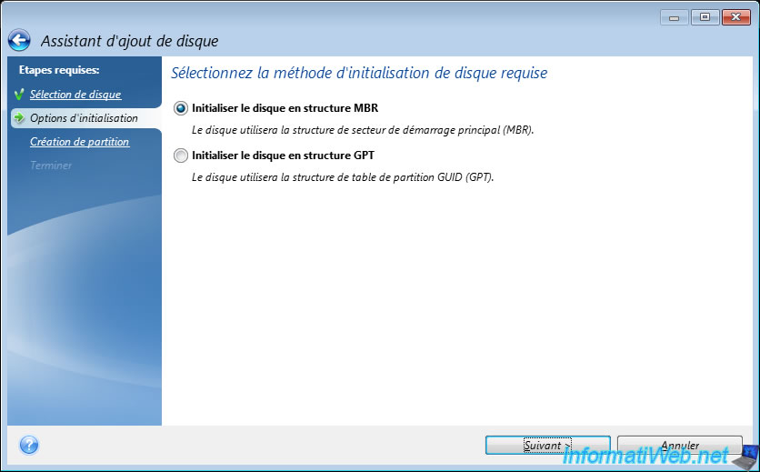 Note: the "Mark partition as Active" option is only available if the partition table used is an MBR and allows you to indicate on which partition the operating system is located (if applicable).