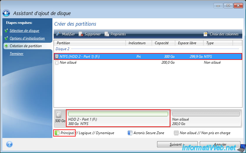 The first partition of 300 GB in NTFS configured appears.