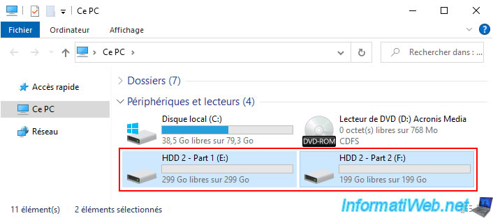 As you can see, in our case, Acronis Cyber Protect Home Office (True Image) has successfully created 2 partitions (one of 300 GB and the other of 200 GB) on our 500 GB physical disk.