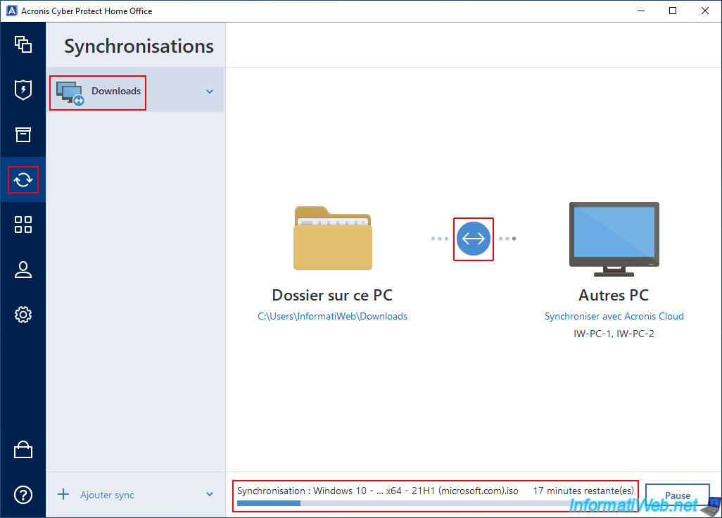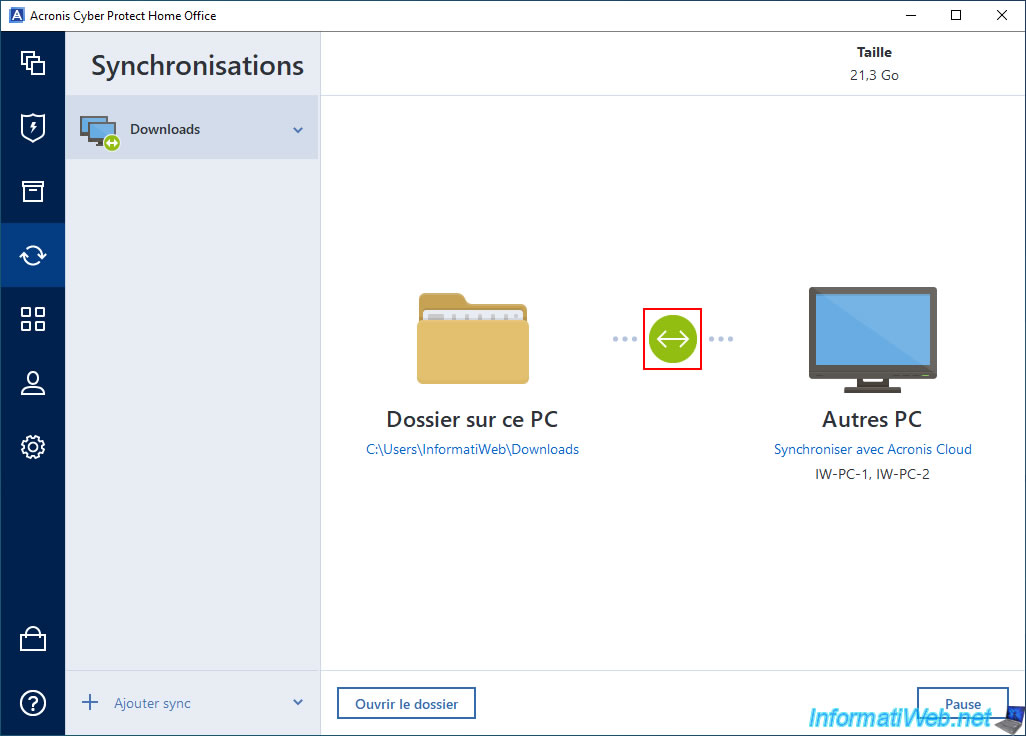 In our case, we added a file in the folder to synchronize of our 1st PC.