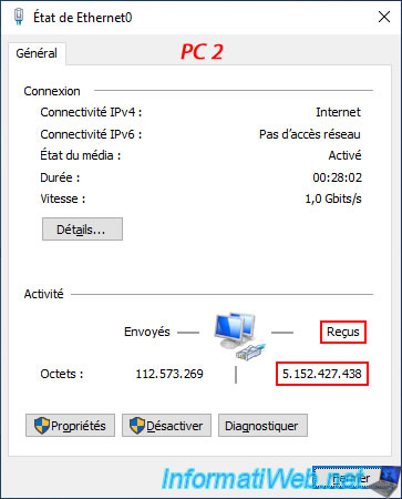However, on this 1st PC (which is currently sending files), you will be able to see in the status of your network connection that data is being sent.