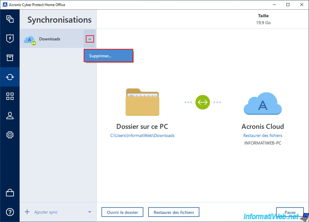 To remove synchronization from this "Downloads" folder, go to the "Synchronization" section of Acronis Cyber Protect Home Office (True Image).