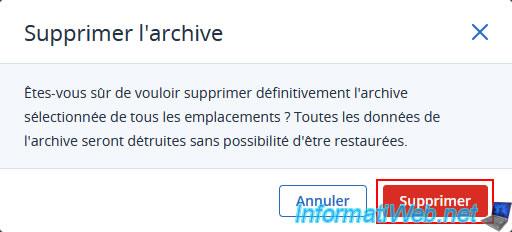 In the "Delete Archive" popup that appears, click the "Delete" button.