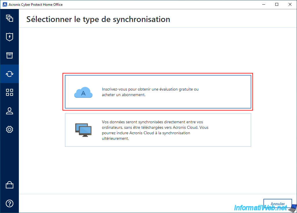 Warning : this option therefore requires a subscription to Acronis Cloud.