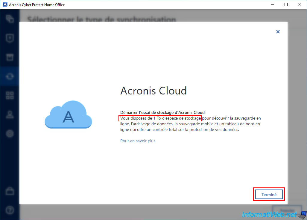 If you want to test this feature, you will see in this tutorial how to activate access to Acronis Cloud for free for 1 month.