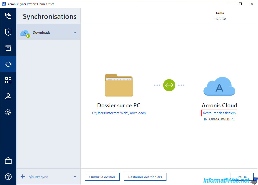 Important : as explained previously, for synchronizations to Acronis Cloud, there is a delay between the moment the file is synchronized to Acronis Cloud and the moment the synchronized file appears in the list of files available on Acronis Cloud.