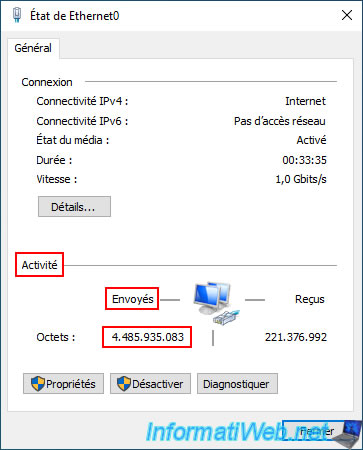 In our case, we can see that about 4.4 GB were sent through this network card.