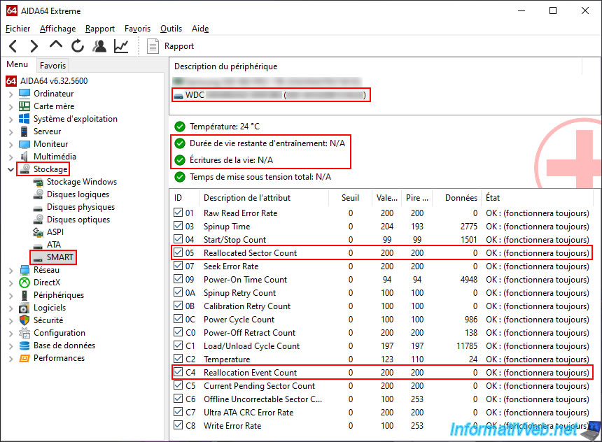 Then, in the list below, you can see all the SMART data supported by your hard drive.